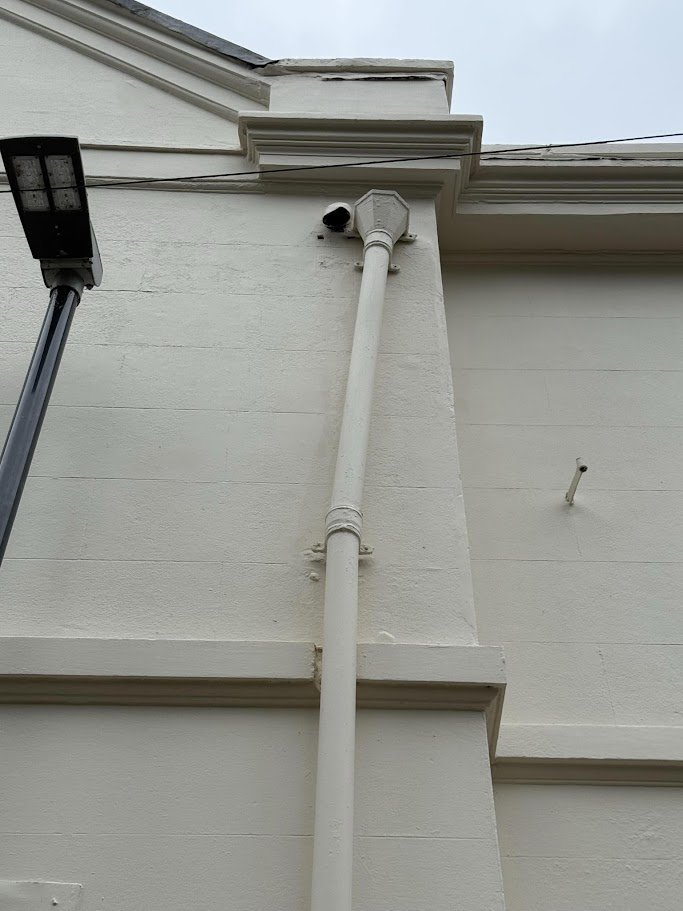 Downpipe blockage which causing damp to external brickwork